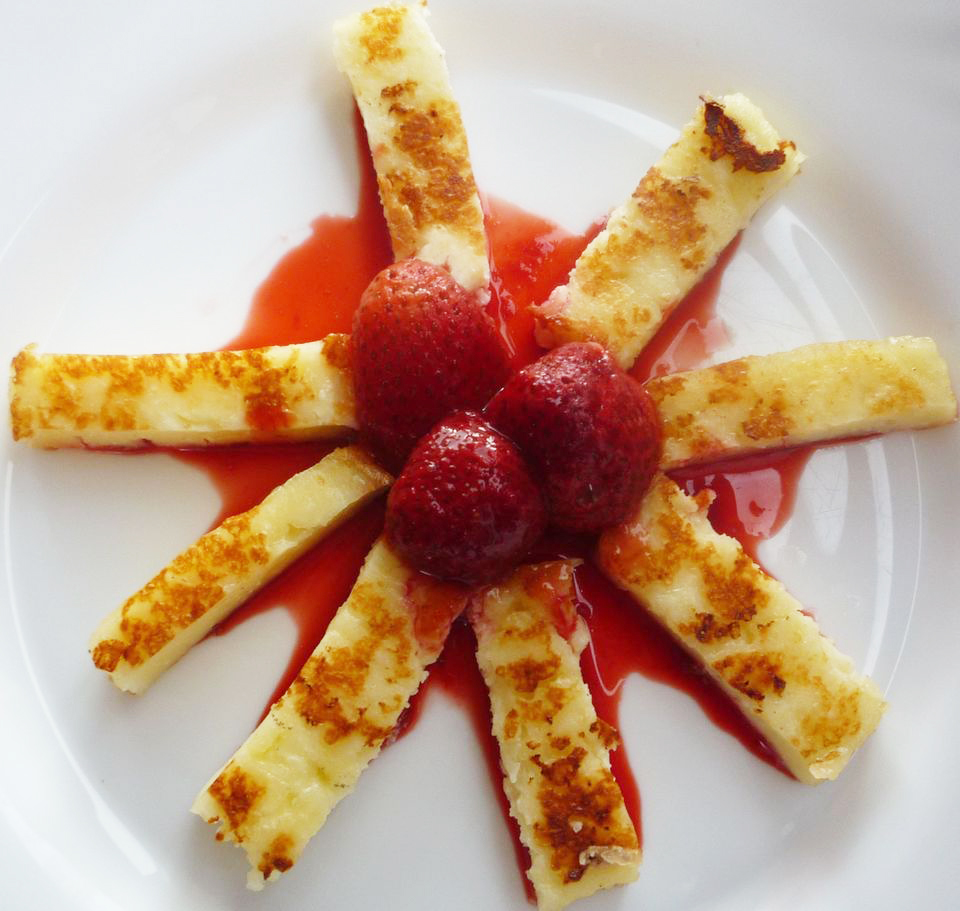 Grill the SIR GRILL cheese on both sides in a frying pan. While the cheese is grilling put the strawberries and sugar in the pan over a low heat for just a minute or two until the sugar melts. Don’t let the strawberries become brown. Place the cheese on a plate, cover it with the strawberries. Bon appetite!